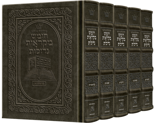 Czuker Edition Hebrew Chumash Mikra’os Gedolos Slipcased Set Hand-Tooled Grey Leather