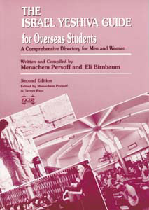 A comprehensive directory of Yeshivot in Israel with programs for overseas students. Revised for 1994. The only guide of its kind. Lists most institutions in copious detail, including curriculum, level of study, school philosophy, faculty, student body, a